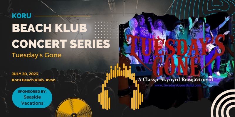 Summer is the season of sun-kissed days, cool breezes, and unforgettable memories. And what better way to elevate your summer experience than by immersing yourself in the captivating melodies and electrifying energy of a concert series on Hatteras Island? Seaside Vacations is pleased to announce that we will be sponsoring the 2023 Koru Beach Klub Concert Series at the Koru Beach Klub in Avon, NC! Come join us as we celebrate the summer with live music, good times, and great people at the Beach Klub at Koru Village! Koru Beach Klub's summer concert series is the perfect opportunity for music enthusiasts, friends, and families to come together and celebrate the joys of life. With an incredible lineup of diverse genres and mesmerizing performances, we guarantee an experience that will leave you craving more. From soaring rock anthems to soothing acoustic ballads, and unbelievable cover bands bringing you everything from Tom Petty to Led Zeppelin, there's something for everyone in the 2023 Koru Beach Klub Concert Series.