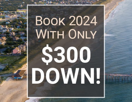 Escape to paradise with our exclusive 2024 vacation rentals. Book now with just $300 down and guarantee your spot in the sun-drenched haven of the Outer Banks. Unwind in luxurious beachfront homes, create unforgettable memories, and bask in the coastal charm.
