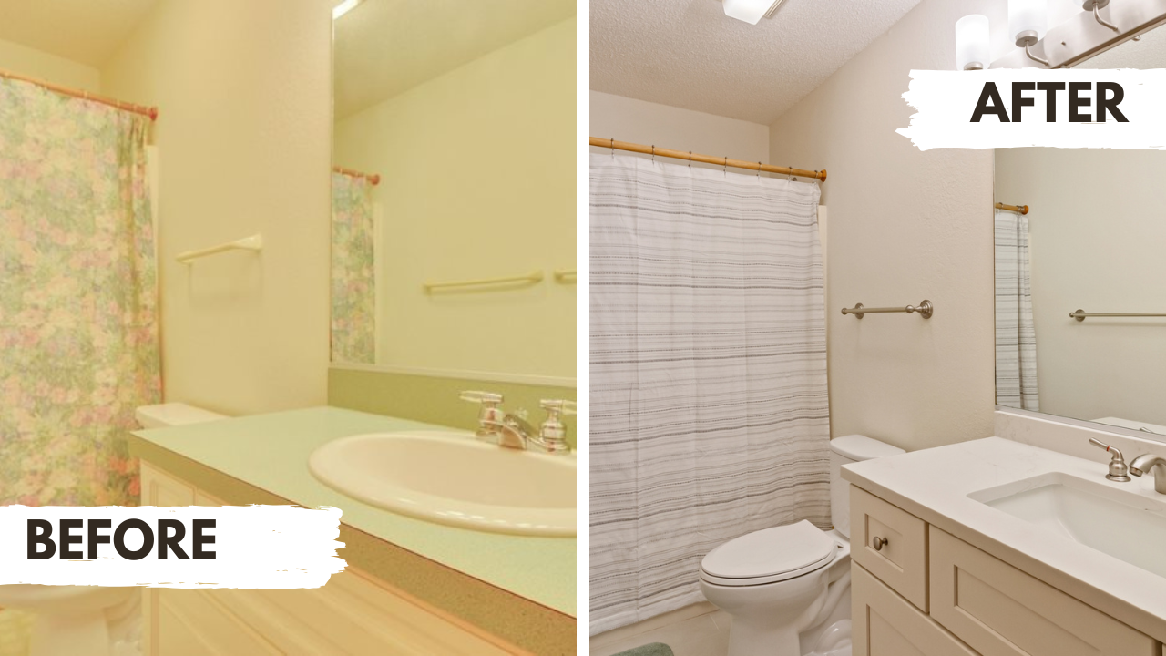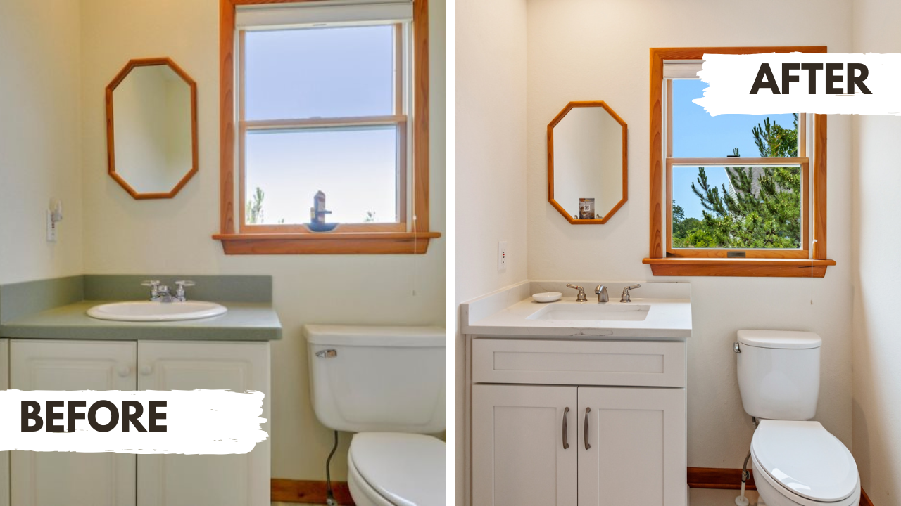 Freshen up in the Half Bathroom with new furnishing and a beautiful new countertop!