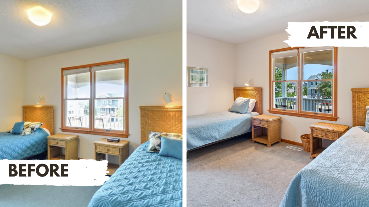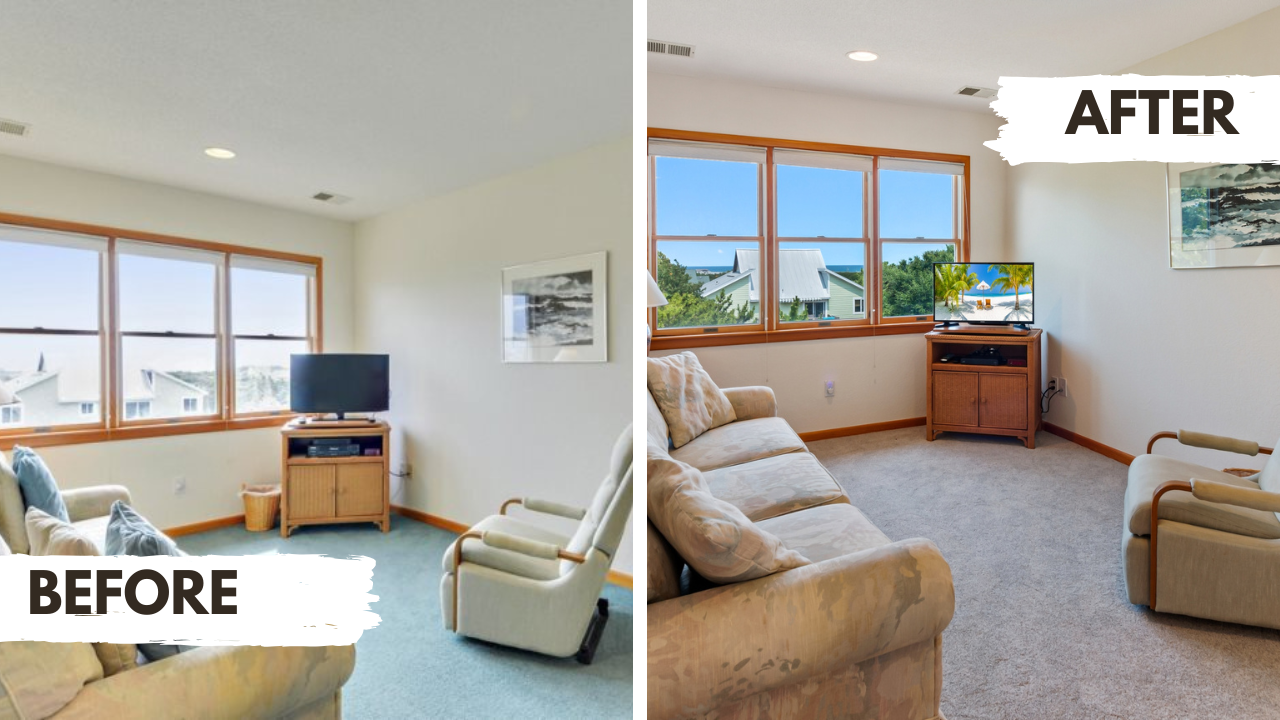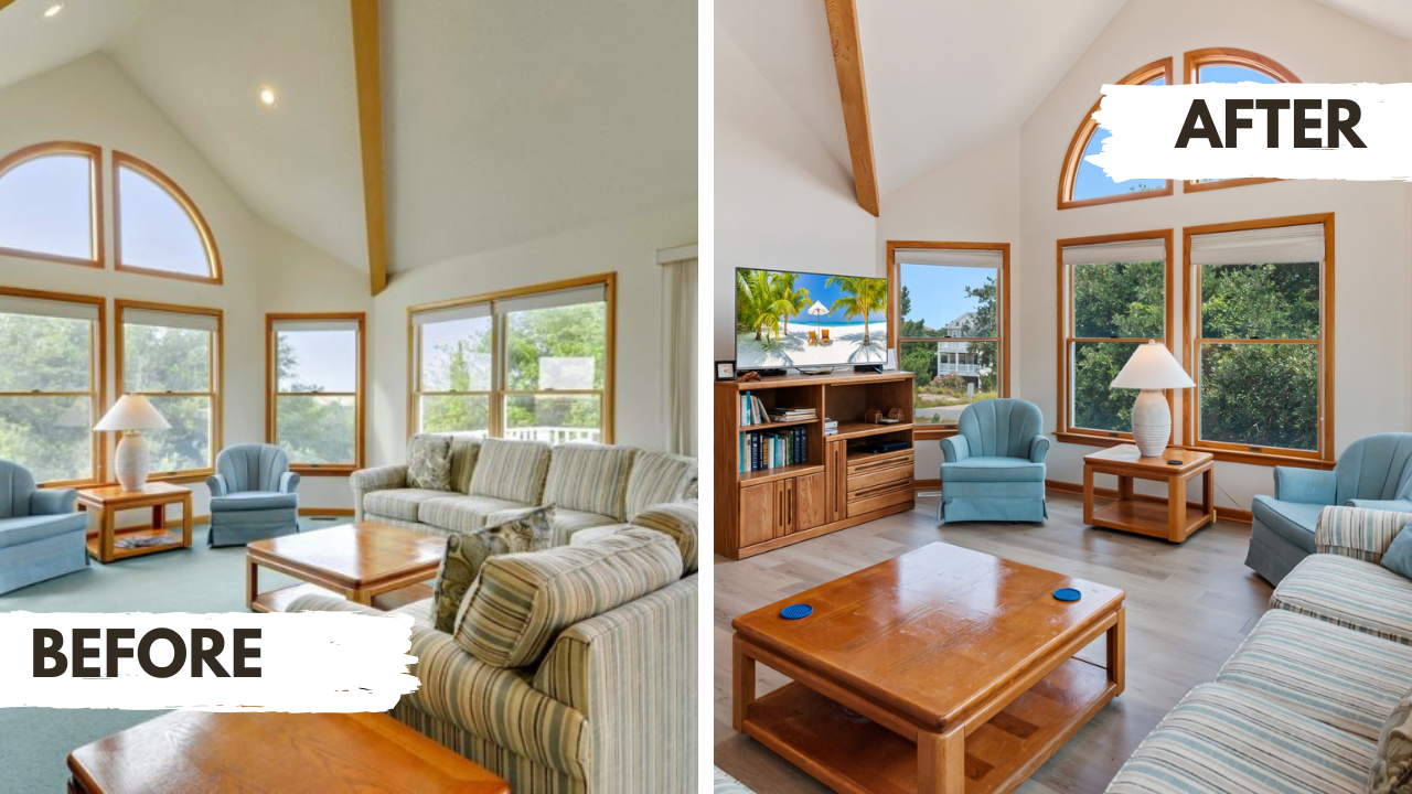 New flooring gives this space a fresh, gorgeous feel - perfect for relaxing after a day at the beach!