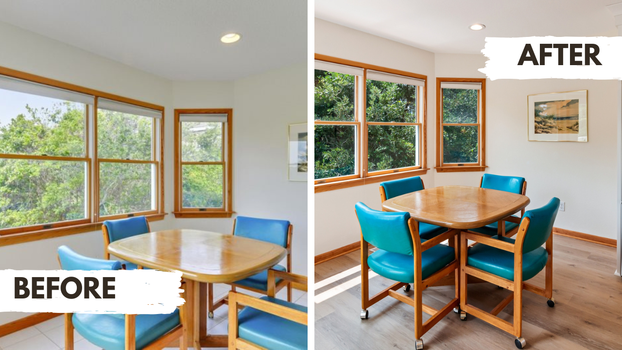 Have breakfast together in the sunshine where new flooring makes it feel like a whole new room!