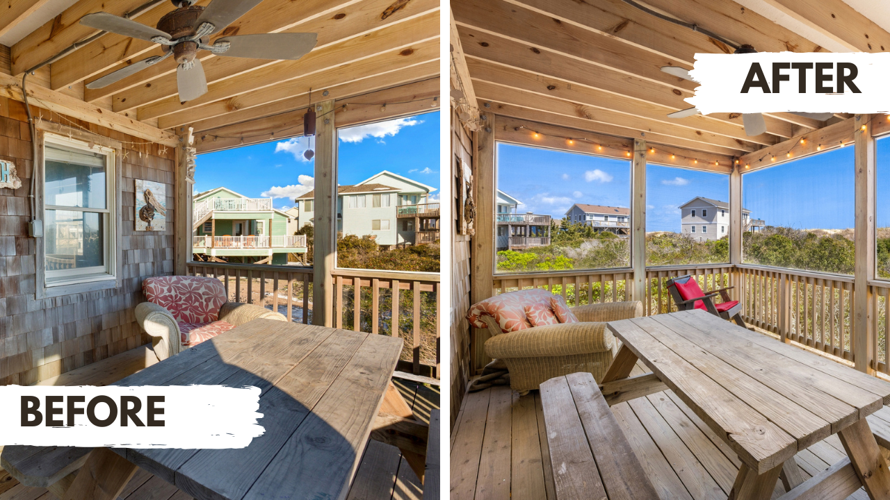 Enjoy a more inviting, functional, and comfortable area for extended outdoor living ideal for morning coffee and evening cocktails while enjoying the ocean breeze without the bugs.