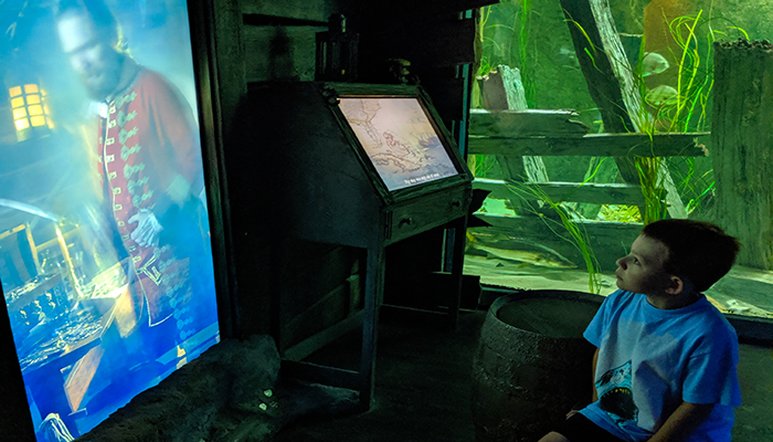 Perhaps one of the most well designed and unique parts of the aquarium is the Sea Treasures Exhibit in which visitors enter a sunken ship exhibit to learn all about the ocean life in the Atlantic. In this exhibit, there are plenty tanks designed to look like you are on the sea floor as well as short films kids will enjoy.