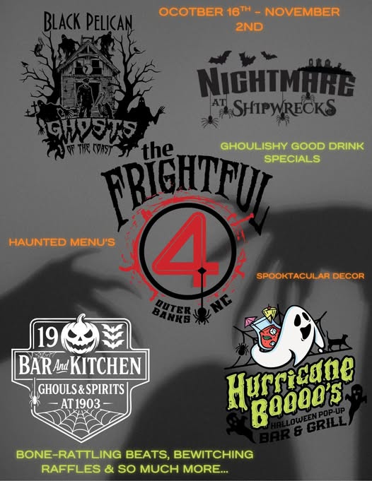 From October 16 – November 2, four beloved Outer Banks restaurants are joining forces to create one hauntingly good Halloween experience — The Frightful Four Halloween Pop-Up Event!
