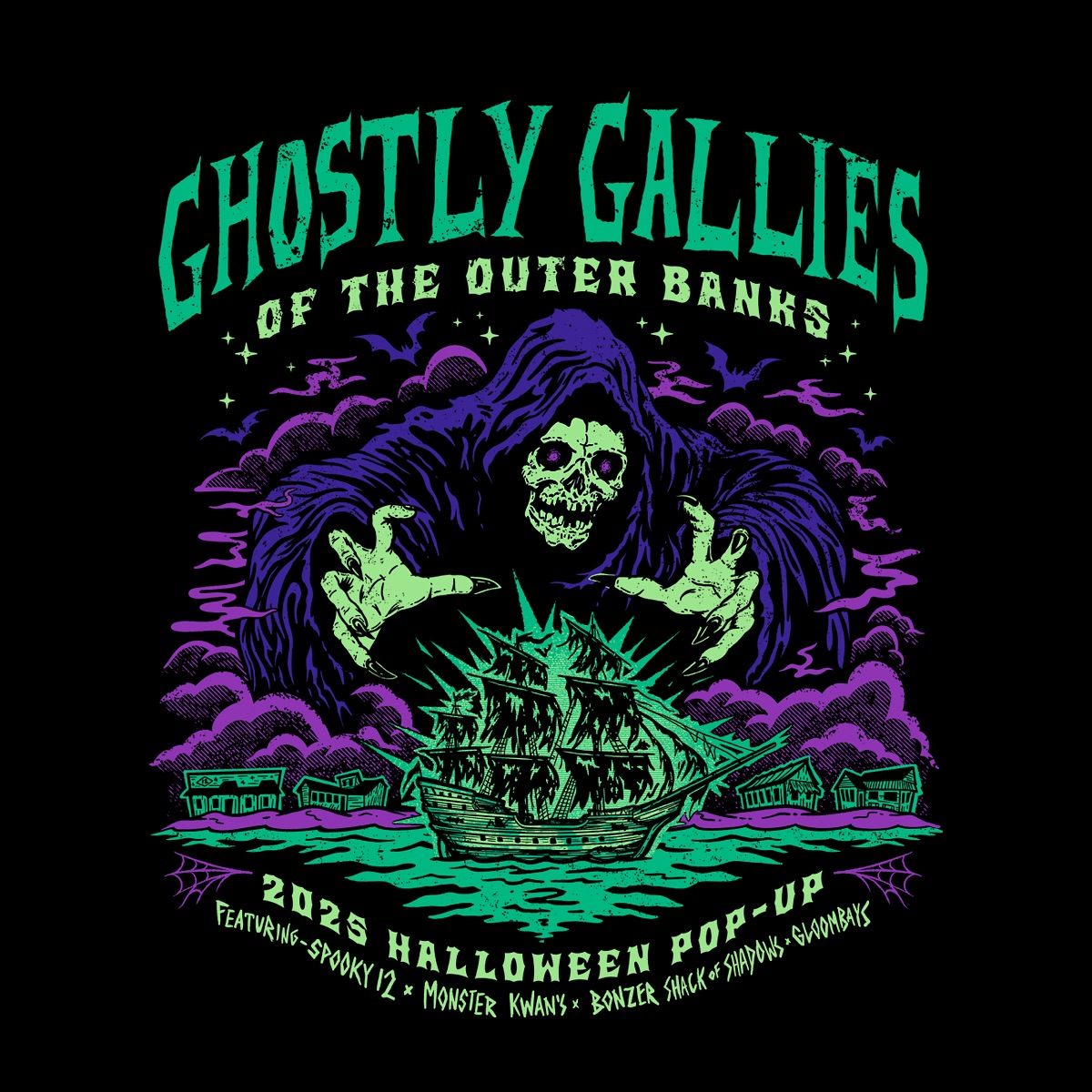 From October 10th through Halloween night, Mama Kwan’s Tiki Bar & Grill, Lucky 12 Tavern, Goombays Grille & Raw Bar, and Bonzer Shack will host a Halloween pop-up series like no other. Think haunted shipwreck vibes, creepy cocktails, eerie décor, and unforgettable Outer Banks nightlife—all with a spooky seasonal twist. Ghostly Gallies brings together four beloved OBX bars and restaurants, each with their own unique haunted theme: