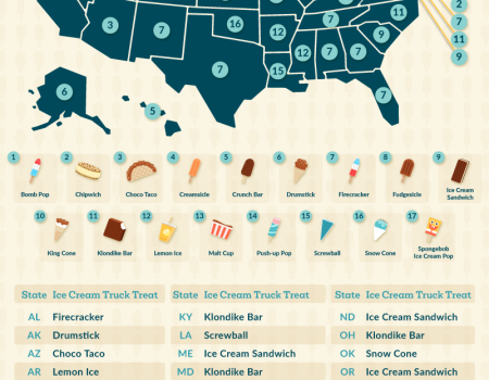 Americans across the country melted for 17 out of the 24 ice cream truck treats included in this study. Search interest for the Bomb Pop exploded in Iowa and South Dakota, while dessert fans in Colorado and Wyoming stood in line for their number one pick, the Creamsicle. Oklahomans’ winning treat, the Snow Cone, gave the Sooner State the next best thing to a summertime snowfall. The King Cone reigned supreme in New Hampshire, and support for the Screwball in Louisiana was no laughing matter. Hawaiians enjoyed the Crunch Bar on island time, Minnesotans brought the soda shop home with the Malt Cup, and New Jersey eaters treated themselves to a cookie a la mode with the Chipwich.