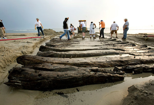 A Corolla homeowner discovered and reported the possibility of a wreck in 2008. Not thinking much of it, officials administered no investigation. After costal storms churned up a lot more of the wreck in 2009, and people started finding coins from the early 1600's washing up on the beach, investigators began the process of recovering, identifying, and trying to determine the origins of the ship.
