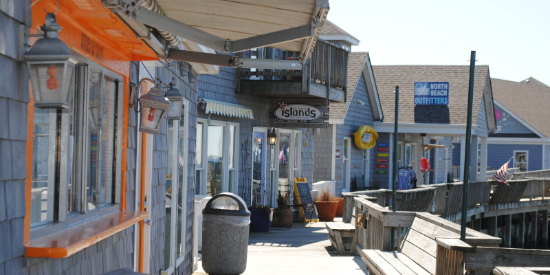 Located in Duck, The Waterfront Shops are the perfect blend of great shopping meets gorgeous natural scenery. In fact, nothing reminds you that you're on a beach vacation like perusing shops perched right on the water's edge! Enjoy shops like Outer Banks Olive Oil Co., Gray's, Sea Dragon Gallery, Candy & Corks, Duck's General Store, and Duck's Cottage Coffee & Books. Plus, when you get hungry, there are great dining options including The Blue Point Bar and Grill and Sunset Ice Cream & Cappuccino.