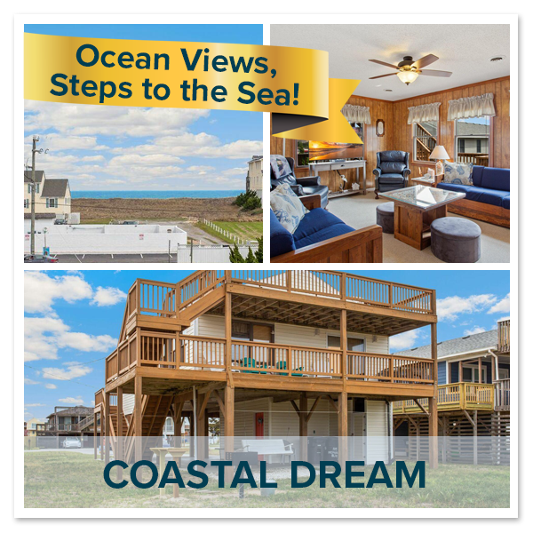 Located in the heart of Kill Devil Hills at MP 8.5, Coastal Dream has everything you need to experience the best of what the Outer Banks has to offer. Enjoy a 3-minute walk to the Ocean Bay Blvd. Beach Access, Ceiling Fans and TVs in every room, Cozy Outdoor Deck Furniture and a 2nd-Level Deck for Premiere Viewing, and plenty of parking under the carport! Its close location to the beach and multiple OBX landmarks, such as the Wright Brothers Memorial and Jockey’s Ridge, ensures that you and your family will want to return to Coastal Dream again and again for memories that will last a lifetime!
