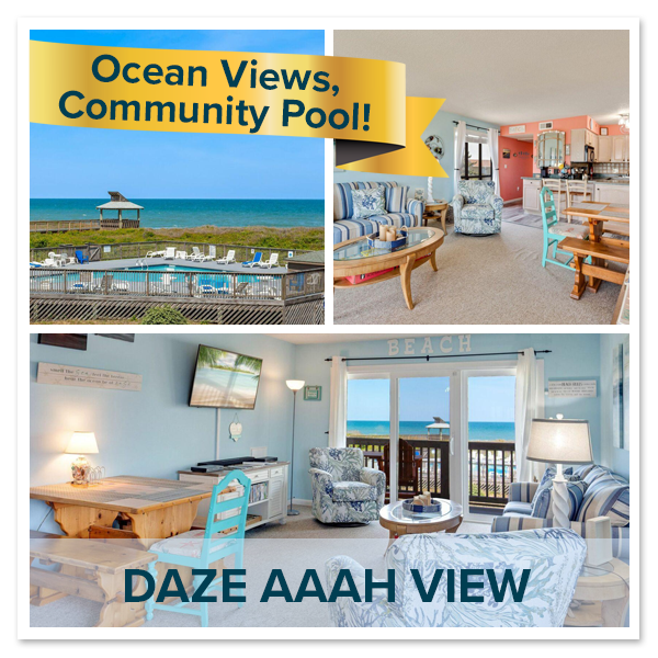 If you’re looking for a beautiful oceanside condo that offers brilliant views of the ocean and a chic interior that welcomes you like a home away from home, Daze Aaah View is just the place for your next Outer Banks vacation. This gorgeous condo with a beachy interior is perfect for a romantic getaway or a small family vacation where the focus of every day will be family, surf, sand, and sun. Enjoy easy access to the beach with a Colony By the Sea community walkway and spend your vacation within walking distance of downtown Duck. Every day spent at Daze Aaah View will fill you with ease as you enjoy your stay in this quaint, Outer Banks town. See availability here.