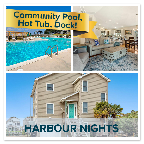 This 3-Bedroom, 2.5-Bathroom home has everything you need to enjoy a spectacular Outer Banks vacation. Harbour Nights is situated on 82 feet of coveted canal front with a dock and pilings ready for tying up your boat. Grab one of the available kayaks and hit the water before relaxing in the Colington Harbour Community Pool or your warm, bubbly Hot Tub! After relaxing in the spacious Living Areas and beautiful interior inside, enjoy cool, breezy evenings on the Screened-In Porch and take in the sunset from one of the numerous decks. Located on a quiet cul-de-sac in this beautiful community, you’re going to find yourself coming back to Harbour Nights year after year for easy access to the sound and the beach at the beautiful island retreat.