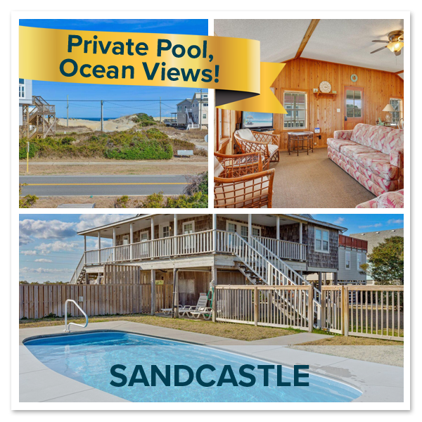 If you’re looking for the perfect beach box vacation rental for your next Outer Banks vacation, come make Sandcastle your own castle in the sand! With 3 Bedrooms, 2.5 Bathrooms, and plenty of room to keep everyone comfortable, you can rest assured that your stay at Sandcastle will have you coming back to the Outer Banks year after year to create unforgettable memories with your family. Enjoy the benefits of being close to the beautiful, unspoiled beaches of the Cape Hatteras National Seashore before taking a dip in your own Private Pool and relaxing out on the porch for your ultimate Outer Banks vacation relaxation.