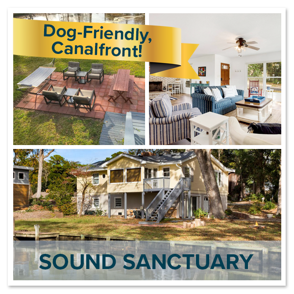 This beautiful 3-Bedroom, 2-Bathroom beach house is the perfect dog-friendly home for smaller families. If you’re looking for the ideal place to spend your Outer Banks vacation on the water, this is the home for you! Bring your boat and enjoy your own private dock for easy access to the Currituck Sound while launching those early morning fishing quests or evening watersports sessions. No boat? No problem! Multiple private and public beach accesses are only minutes away, or if exploring is on your menu, use the nearby community sidewalks or VayK Gear Credit included with your rental to discover all the charm Southern Shores has to offer. No matter what your interest is, Sound Sanctuary is sure to be your choice canal-front vacation home year after year!