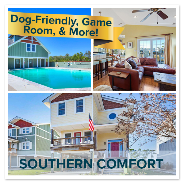 If you are looking for the perfect vacation rental that gives you all the seclusion of a residential area while keeping you close to the beach and the action, Pelican Palm is everything you need and more. This 4-Bedroom, 3-Bathroom home sits on the corner of a quaint residential cul-de-sac in Kill Devil Hills, making it the ideal spot for a family vacation or a private retreat with easy access to cool breezes and sandy escapes with the beach just a 2-minute drive away! See more here.