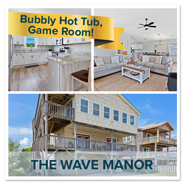 This gorgeous 5-Bedroom, 4-Bathroom retreat offers three full levels of comfortable vacation amenities, a Crow’s Nest with immaculate ocean views, a game room, and a warm, bubbly Hot Tub to keep your days on the Outer Banks restful and fun. And since you’re a 3-minute walk away from the Baltic Street Beach Access, every day can be a beach day when you stay at Wave Manor. Whether you’re looking for a relaxing getaway that will help you reconnect with nature or a spacious home base for exploring the best of what the southern Outer Banks has to offer, you’ll love every carefully curated detail of Wave Manor.