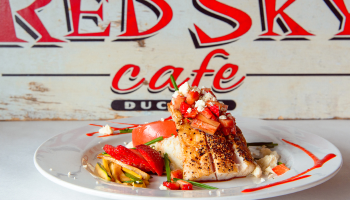 Situated in the heart of downtown Duck at 1197 Duck Road, Red Sky Café isn’t your ordinary bistro or café. Chef Wes Stepp, well known chef along the Outer Banks and throughout Virginia, has been delighting customers at Red Sky Café for over 10 years. Stepp takes great pride in preparing fresh, creative meals which feature only the finest local ingredients