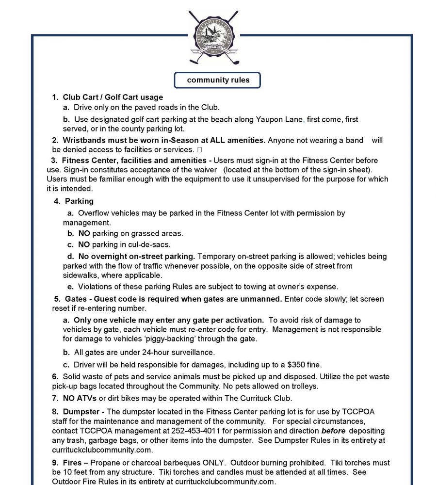 Important Community Guidelines for Your Currituck Club Stay
