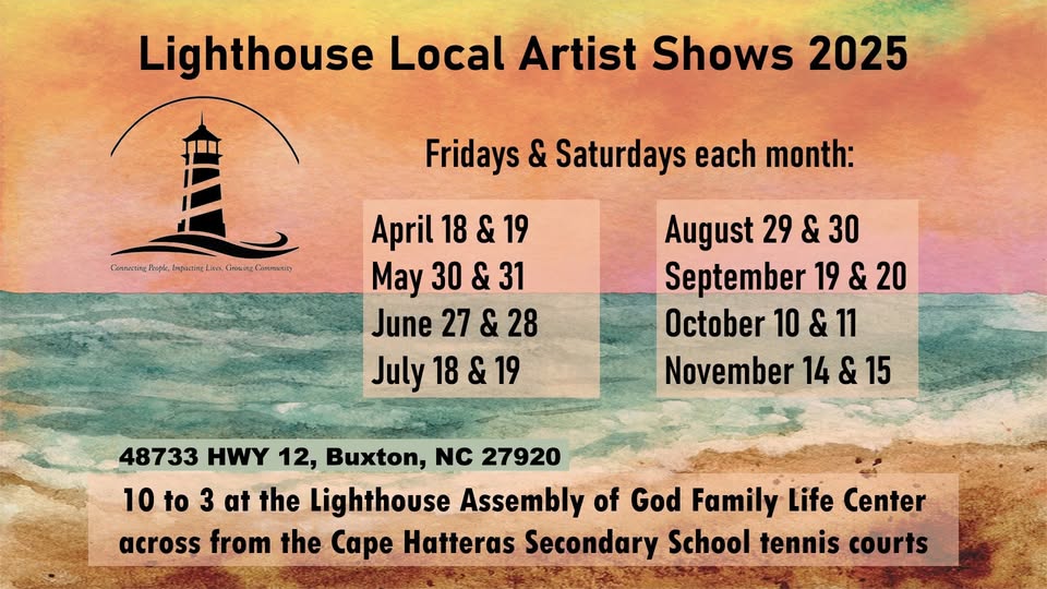 Hosted at the Family Life Center by Lighthouse Church of Buxton, the Lighthouse Arts & Crafts Show welcomes locals and visitors alike into a clean, air-conditioned venue—a true retreat from the heat, humidity, and summer storms that often roll through Hatteras Island.