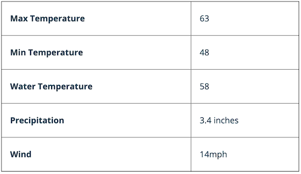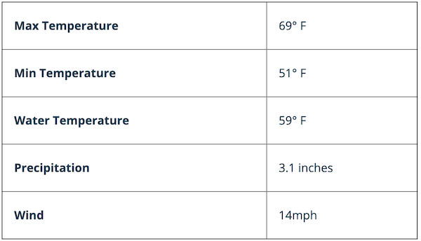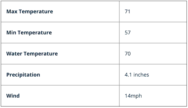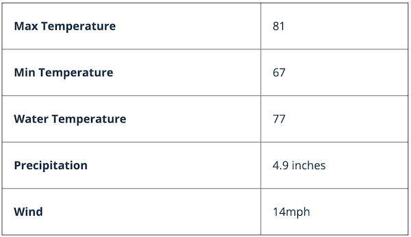 We love helping visitors plan the perfect vacation on the Outer Banks and we often get questions about how warm the ocean water temperatures currently are. Since we get so many questions regarding this topic, we’ve decided to put together a post outlining the best months to enjoy a warm Outer Banks water temperature. We figured the easiest way to explain just how warm (on average) ocean water temperatures are is through a table. The below weather readings reflect the average temperatures (degrees Fahrenheit), wind velocity (MPH), and precipitation (inches) over a length of ten years at Cape Hatteras.