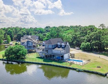 It Doesn't Costa Lotta to experience the best of the OBX at this grand retreat! There’s no need to spend a lotta because everything you need for the perfect family vacation is at your fingertips in this stunning 5-bed 3.5-bath vacation rental located on a private cul-de-sac with 400 ft. of water frontage and 2 boat slips! Enjoy beautiful sunsets from the vantage point of your hot tub or private pool, or just unwind on the sprawling decks and toast another perfect day at the beach. When it’s time to hit the beach, the Ocean Bay Boulevard Beach Access is just 10-minutes (4.2-miles away) with a lifeguard, paved parking, handicap ramp, and bath house!