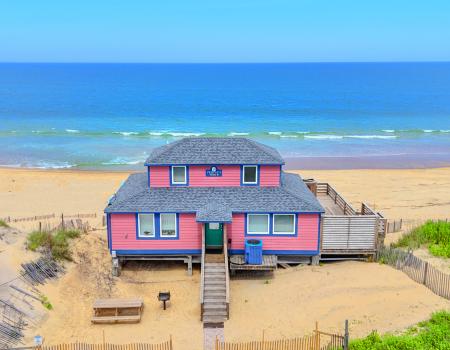 Spend your Outer Banks holiday vacation in this iconic, classic Outer Banks cottage in Kitty Hawk! Visitors and locals alike always keep an eye out for this gorgeous beach house right on the beach in Kitty Hawk. Experience the vacation of a lifetime when you stay in “the pink house” directly on the sand! Wake up each day to an Outer Banks sunrise over the ocean with a warm cup of coffee on your brilliant Sun Deck and step directly onto the beach to enjoy the sensation of warm sand between your toes. Located near all the action but situated on its own stretch of dune, Pelican’s Perch promises the ideal Outer Banks vacation that is the perfect combination of surf, sand, and sun.