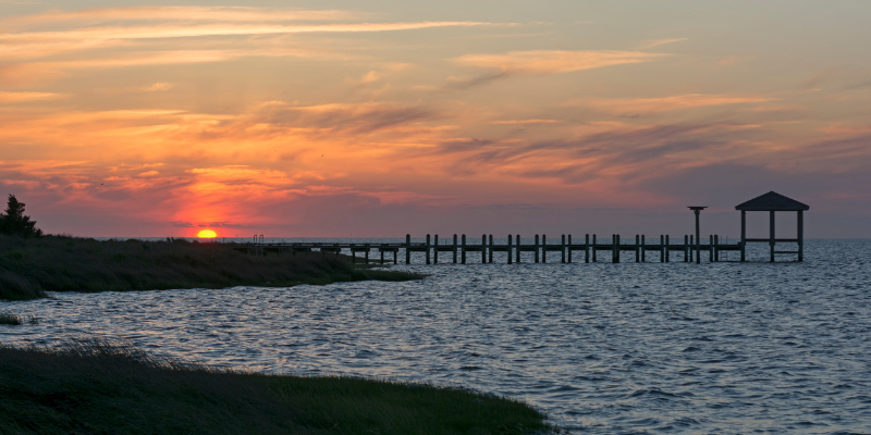 The Pamlico Sound is located to the west of Hatteras Island and Ocracoke Island sitting to the east of Mainland Dare and Hyde counties. At around 80-miles long and up to 20-miles wide, it is the largest sound along the entire Eastern seaboard. In fact, some early explorers even mistook the Pamlico Sound for the Pacific Ocean. Fed by the Oregon Inlet, Hatteras Inlet and Ocracoke Inlet, it connects to both the Atlantic Ocean and the northern sounds which keeps it at a moderate mix of fresh and saltwater. Despite its size, it is very shallow in comparison to the other sounds in the area which has caused treacherous navigation and soundside flooding throughout the last few centuries, particularly during stormy conditions. However, the Pamlico Sound is derived from a unique ecosystem of fish, mammals, waterfowl, and reptiles while also boasting wildlife preserves, saltwater marshes, and maritime forests. Visitors can access the Pamlico Sound from any number of private and public sound beaches (including the Salvo Day Use Area and the Canadian Hole between Avon & Buxton) to look for wildlife, cast out a line, or spend the day swimming in the shallow waters without worrying about dangerous ocean currents. Water sports enthusiasts especially flock to the Pamlico Sound due to the ideal conditions for paddleboarding, parasailing, windsurfing, kiteboarding, and kayaking. Plus, no matter where you stand along the Pamlico Sound, you are guaranteed a view of an unparalleled sunset.